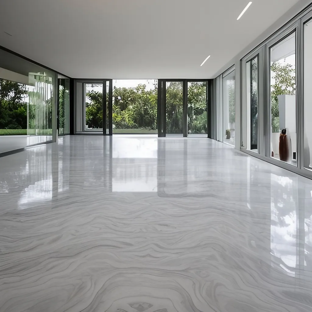 Epoxy floors resist stains, moisture, and dust, making them easy to clean and maintain while keeping a fresh, glossy appearance for years.